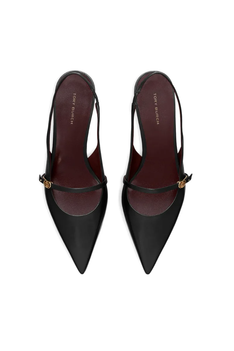 Tory Burch Double T Buckle Mary Jane Slingbacks in Black Leather